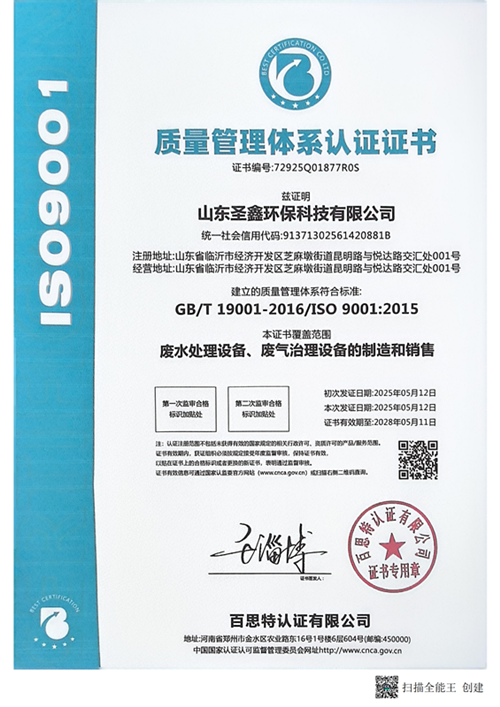 近日,山東圣鑫環保科技有限公司迎來了發展的重要里程碑。公司正式通過了ISO 9001質量管理體系、ISO 14001環境管理體系、ISO 45001職業健康安全管理體系認證,榮獲三項權威認證證書,這標志著公司在規范化、標準化管理體系建設上取得了階段性重大成果。